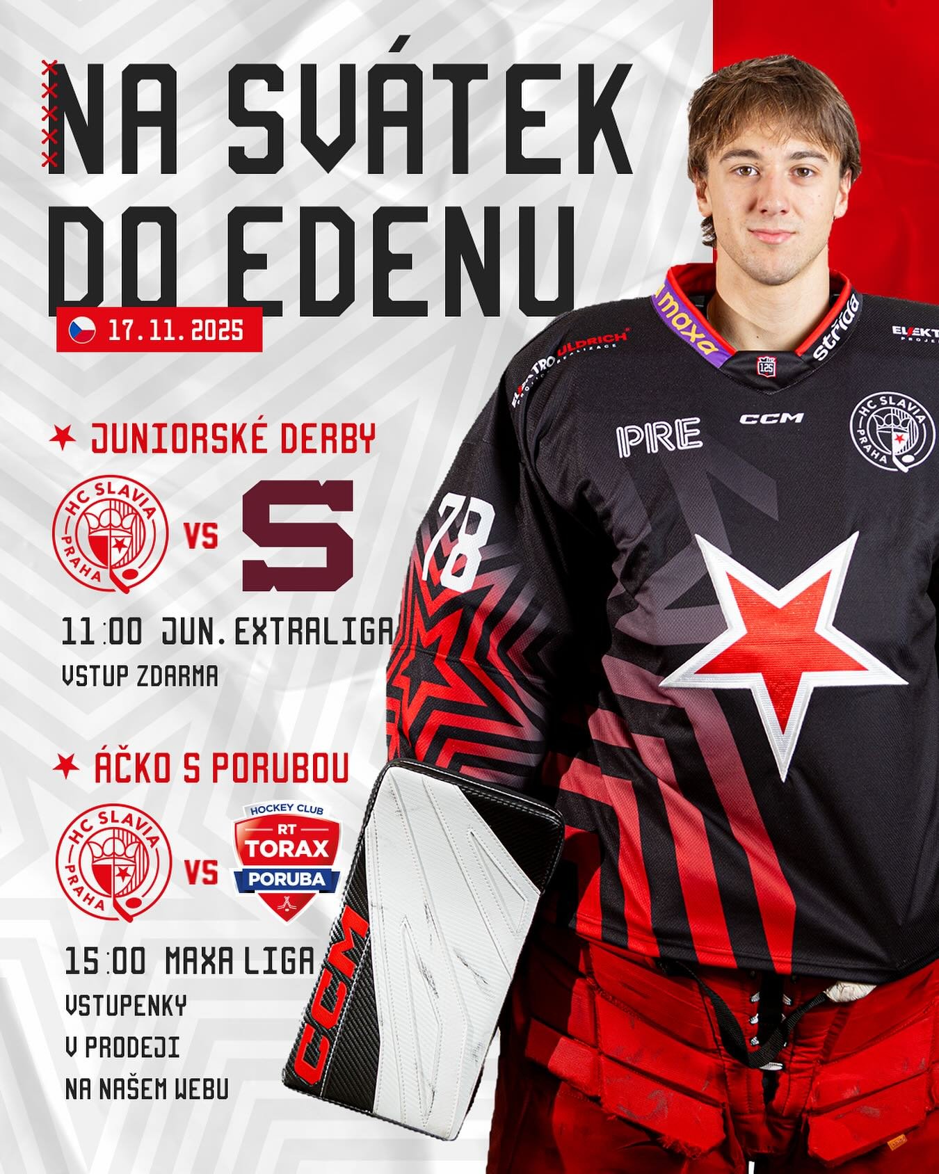 Přijďte slávisty podpořit do Edenu! Úvodní buly je na programu v 15 hodin, vstupenky zakoupíte online, nebo na pokladnách zimního stadionu. Utkání můžete sledovat také na Sporty TV a webu www.onlajny.com. Dorazit ale můžete už na juniorské extraligové derby od 11 hodin, vstup je zdarma. Vytvořte slávistům skvělou kulisu!.